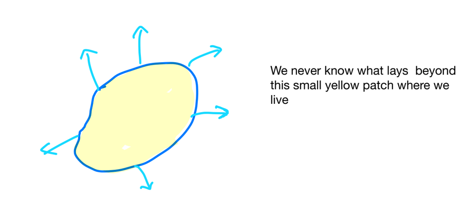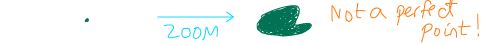But this is not perfectly a point that we imagined in our head because if we zoom into this blot of ink that we had shown as a point, it would be a thick blob and consist of many many points. So in reality, if I indeed mark a point in the plane, you cannot see it at all for it is so tiny! (It has no size). So you see that the concept of a point is also a figment of our human imagination but just that all of us have the same fantasy of a point in our minds as the basic constituent of plane geometry.