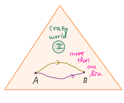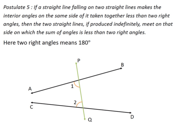 Two lines are said to be parallel either if they are the same, or they do not meet all no matter how much extended. Again, we have a strong belief regarding the existence of parallel lines but again physically we can never draw two distinct parallel lines as we have to be sure that they don’t intersect in the entire infinite plane how much ever they are extended. Again this notion should be natural to all.