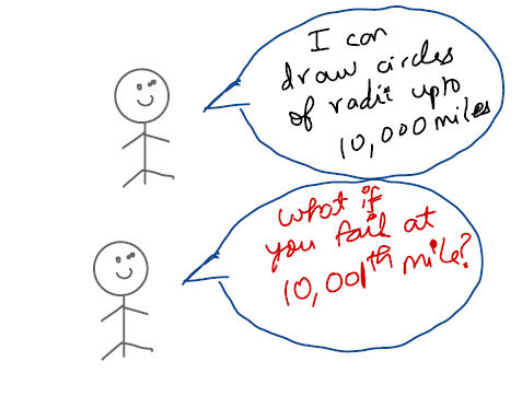 Statements 1 and Parallel Postulate involve indefinite extensions of lines. In statement 1, it just says that the two lines when extended, meet somewhere in the plane. We are not guaranteed that they will meet within this region or sorts. Similarly, in parallel postulate, to check if two lines are parallel, we have to extend the lines indefinitely and ensure that they do not meet how much ever we extend. Again, they involve the entire infinite plane as they talk about extended lines, parallelism and meeting somewhere. But the statement that the sum of three angles of a triangle is is something that is local. A triangle is a local entity and confined to a finite region of the plane and its interior angles can be checked by staying in the region bounded by the triangle itself without flying off anywhere. So, later in this course, we want to study about “local” geometric properties, which means properties of geometric figures confined to a given local region. In this case, the interior angle sum formulation is useful as we can talk about sum of interior angles of triangles that are confined to a given local region alone whereas in the other version, they involve the entire plane and not use local objects.