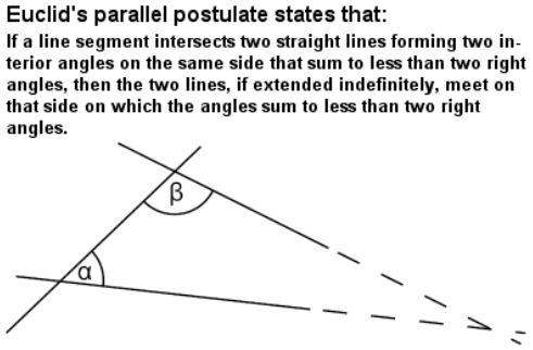 NOTE: The question as to what happens when we modify the parallel postulate is the subject of non Euclidean geometry and will lead to curvature! (in future weeks!)